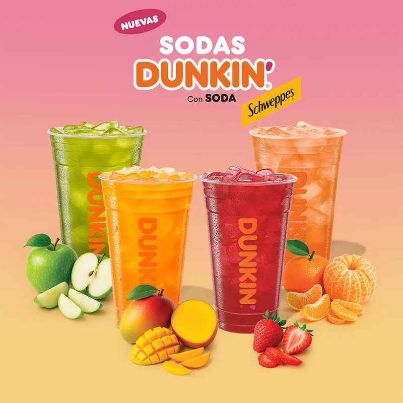 Bebidas Sodas: Nuevas Bebidas Sodas DUNKIN’. Llévalas en su presentación Manzana Verde, Mango, Fresa o Mandarina por $10.000. Aplican términos y condiciones: válido a nivel nacional excepto en terminales aéreos. Disponibles por tiempo limitado hasta el 31 de diciembre de 2025, o hasta agotar existencias. Las bebidas vienen en presentación única de 24 Oz. Todos los precios incluyen Impuestos. Conoce más en www.dunkincolombia.com.co